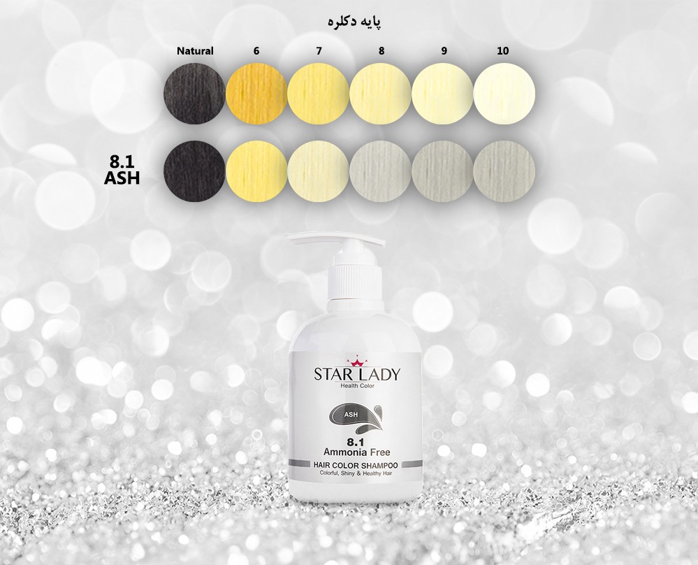شامپو شماره 8,1 «استارلیدی» مخصوص استفاده بانوان است که رنگی خاکستری بسیار روشن دارد. با استفاده از شامپو رنگهای استارلیدی می-توان در مدت زمان 1۰ دقیقه موها را رنگ آمیزی نمود. برای رسیدن به رنگ خاکستری مشابه کاتالوگ، می¬بایست این شامپو بر روی موی دکلره پایه 8 و 9 (بلوند بسیار روشن) استفاده گردد. استفاده از شامپو رنگ خاکستری بر روی موهای تیره تر از بلوند روشن، نتیجه مطلوبی نخواهد داشت. همچنین استفاده از این شامپو بر روی موهای طبیعی اصلا توصیه نمی¬شود چرتا که رنگ خاکستری بر روی موی طبیعی دیده نخواهد شد.