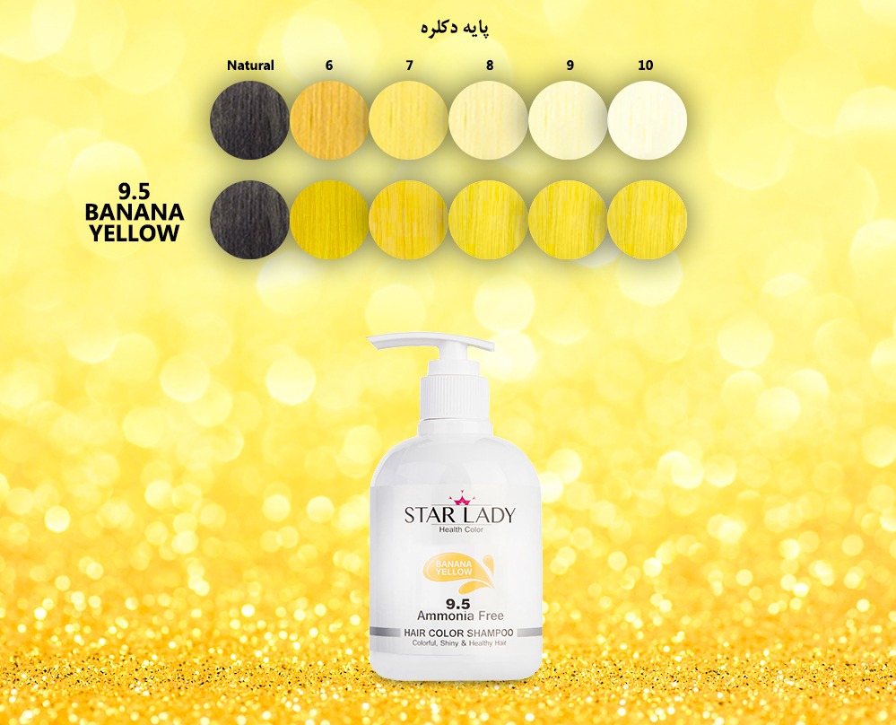 شامپو رنگ بلوند موزی برند استارلیدی به شماره 9,5 بهترین و سریعترین روش برای داشتن موهای بلوند طلایی به حساب میآید. برای رسیدن به رنگ بلوند موزی می بایست این شامپو را به مدت 1۰ دقیقه بر روی موی دکلره بلوند بسیار روشن (پایه 9) قرارداده و سپس آنها را شستوشو نمایید. در صورت استفاده از شامپو بلوند موزی بر روی موهای بلوند روشن (پایه 8) و یا بلوند (پایه 7) بلوند تیرهتری حاصل خواهد شد. استفاده از این شامپو بر روی موهای تیره تر از بلوند و نیز موهای طبیعی توصیه نمی شود؛ چرا که نتیجه مطلوبی ندارد.
