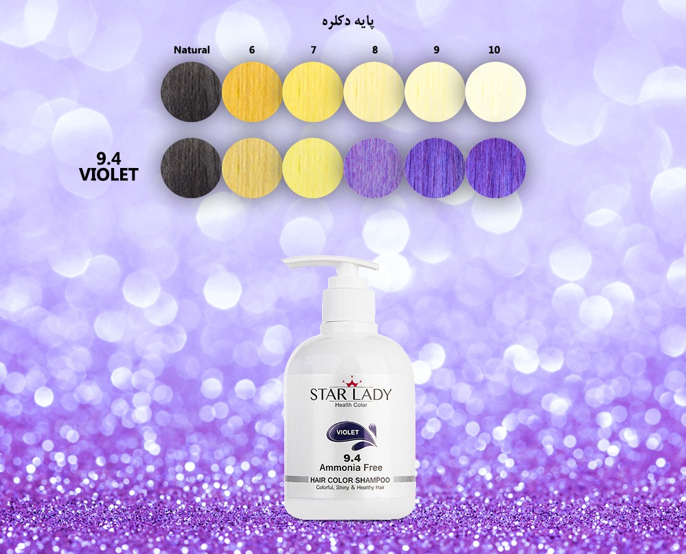 رنگ بنفش با طیف نزدیک به سورمه ای تیره مورد علاقه بسیاری از بانوان به ویژه بانوان جوان دارای پوستهای روشن و شفاف است. اما علیرغم جذابیت این رنگ، به دلیل ماندگاری پایین و لزوم تمدید آن در فاصله زمانی کوتاه، هزینه بالایی را نسبت به سایر رنگها به ویژه رنگهای تیره و طبیعی برای مصرف کنندگان خود به همراه دارد. برای کاهش هزینه علاقه مندان به رنگ بنفش، شرکت استارلیدی شامپو رنگ بنفش با شماره 9.4 را به بازار عرضه کرده است. با استفاده از این شامپو افراد می توانند به سادگی و در مدت زمان 1۰ دقیقه، موهای خود را به رنگ بنفش درآورند. برای رسیدن به رنگ «بنفش» می بایست شامپو رنگ استارلیدی به شماره 9,4 را بر روی موی دکلره پایه 9 (بلوند بسیار روشن) استفاده کرد. استفاده از این شامپو بر روی موهای دکلره پایه 8 (بلوند روشن) باعث ایجاد طیف ضعیفی از رنگ بنفش بر روی مو شده ولی استفاده از آن بر روی موهای تیره تر از پایه 8 دکلره و بویژه موهای طبیعی موجب تغییر رنگ مو نخواهد شد.