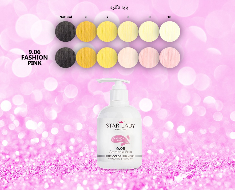 برای رسیدن به رنگ «صورتی» میبایست شامپو رنگ استارلیدی به شماره 9.06 بر روی موی دکلره پایه 9 (بلوند بسیار روشن) استفاده کرد. استفاده از این شامپو بر روی موهای تیرهتر از پایه9، و موهای طبیعی نتیجهای نخواهد داشت. مدت ماندگاری شامپو صورتی 3 شستشو است.