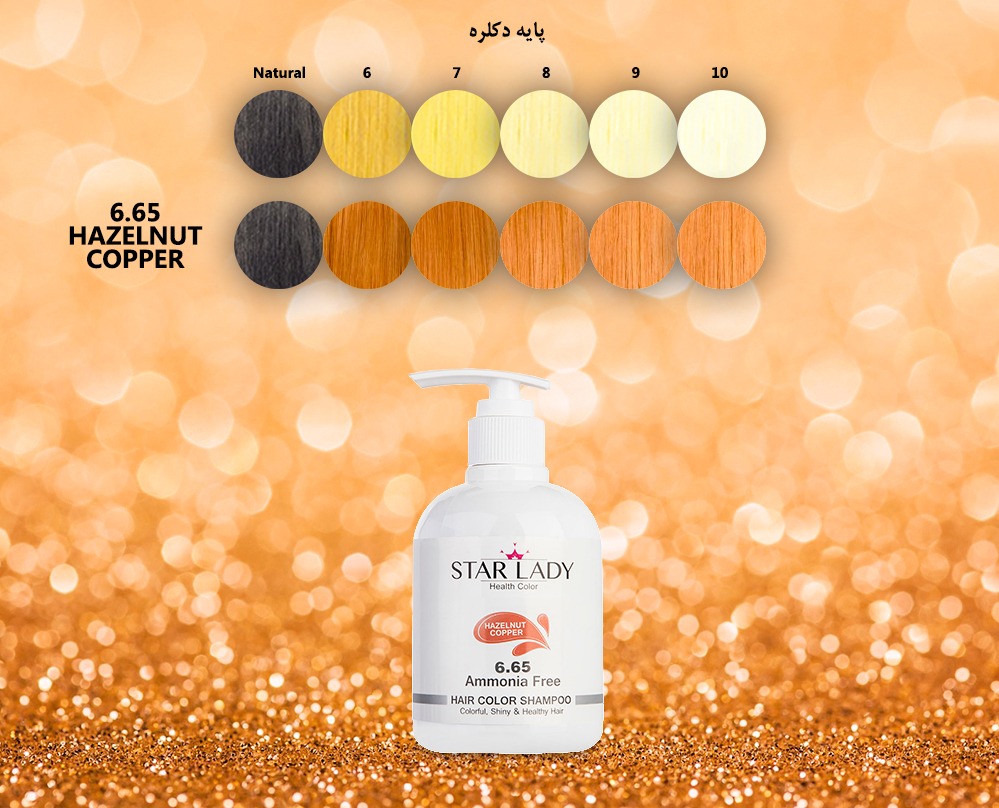رنگهای مسی با ترکیب طیفهای قرمز و طلایی طرفداران ویژه ای در بین بانوان دارد. شامپو رنگ مسی-فندقی از سری طیف های مسی برند استارلیدی است که رنگ قرمز با تن ملایمی از طلایی را به مو می بخشد. از شامپو رنگ شماره 6,65 استارلیدی برای رنگ کردن موهای دکلره شده و نیز تمدید و شارژ مجدد موهایی که قبلا با رنگهای ماهاگونی و یا مسی رنگ شده اند استفاده می شود. برای رسیدن به رنگ دلخواه بهتر است شامپوی مسی-فندقی بر روی موهای پایه 7 و 8 (بلوند و بلوند روشن) قرارداده و به مدت 1۰ دقیقه موها را ماساژ دهید، سپس شستشو نمایید. استفاده از این شامپو بر روی موهای بلوند بسیار روشن (پایه 9) باعث می شود رنگ مسی-فندقی کم رنگ تری بر روی مو ایجاد گردد. استفاده از این شامپو بر روی موهای تیره تر از بلوند و نیز موهای طبیعی نتیجه مطلوبی نخواهد داشت.