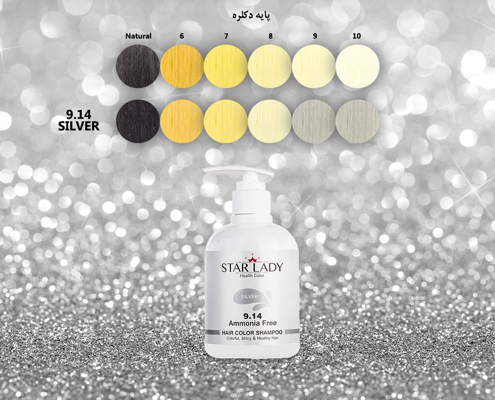 شامپو شماره 9,14 «استارلیدی» مخصوص استفاده بانوان است که رنگی نقره ای بسیار روشن دارد. در نتیجه برای رسیدن به رنگ نقره ای مشابه کاتالوگ، می بایست این شامپو بر روی موی دکلره پایه 8 و 9 (بلوند بسیار روشن) استفاده گردد. استفاده از شامپو رنگ نقره ای بر روی موهای تیره تر از بلوند روشن، نتیجه مطلوبی نخواهد داشت. همچنین استفاده از این شامپو بر روی موهای طبیعی اصلا توصیه نمی شود چرتا که رنگ نقره ای بر روی موی طبیعی دیده نخواهد شد.