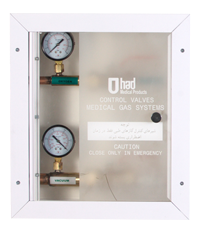 والوباکس جهت گازهای طبی شامل فشارسنجهای نشاندهنده فشارهرخط به طور مجزاوگیج وکیوم جهت نشان دادن وضعیت خط خلاء بانضمام والوهای مخصوص ساخت داخل با لوله های مسی وجعبه ای مناسب بادرب آلومینیمی ومحافظ شفاف به صورتیکه در موقع بسته بودن والوها بستن درب والوباکس امکان پذیر نمیباشد