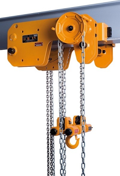حرکت قلاب در این بالابرها بوسیله زنجیر و چرخ زنجیر انجام