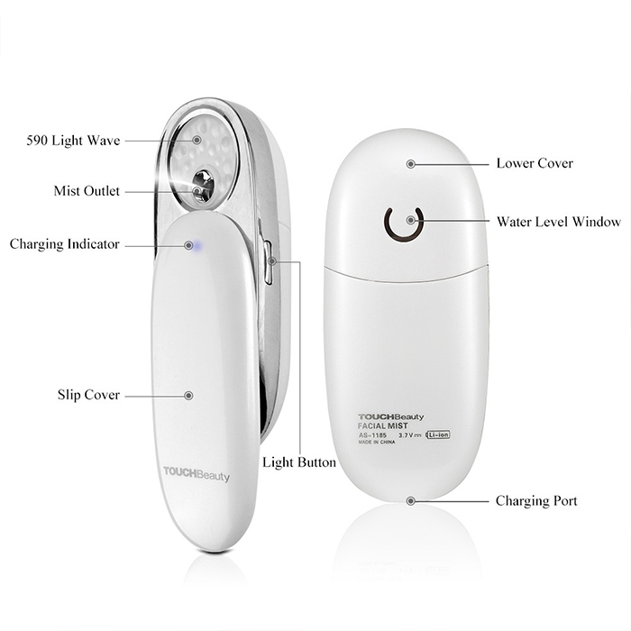 دارای سیستم اسپری آب برای آبرسانی به پوست دارای سیستم نور درمانی با نور زرد قابلیت شارژ مجدد با USB طراحی زیبا و کم حجم مناسب برای حمل و نقل و استفاده در سفر مجهز به تایمر هوشمند 30 ثانیه ای استاندارد اجرایی: Q/YYH1010-2015