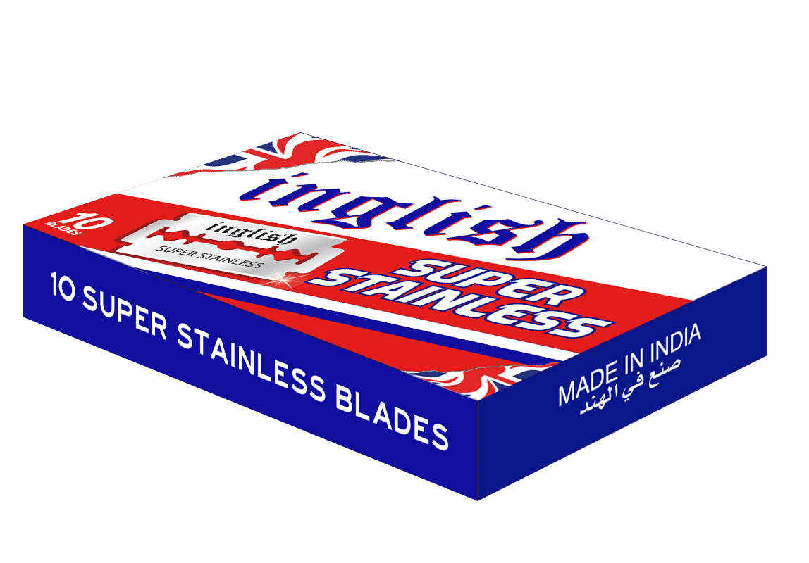 تیغ سنتی انگلیش مورد استفاده در سالن های آرایشی تهیه شده از بهترین استیل ژاپن تحت لیسانس کلاسیکو برند انگلستان تولید در کشور مصر هرکارت شامل 20 بسته تیغ 10 عددی میباشد