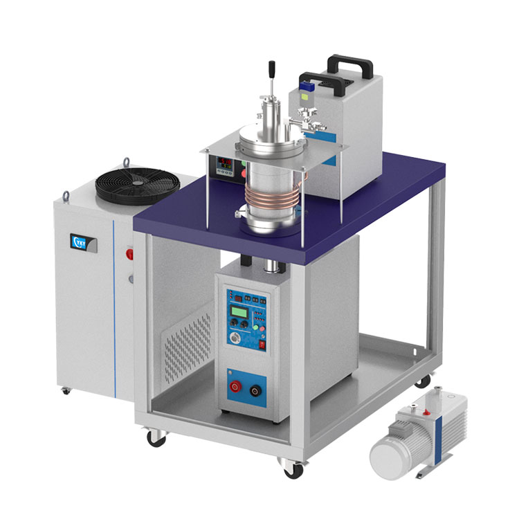 CY-85KTC is a larger temperature-controlled induction heating/melting system with complete accessories, which includes a15 KW Induction Heater, 8.5" (216mm) O.D Quartz Tube with Hinged type Flanges & Valves, Graphite Crucible & Refractory Assembly, 58L/m Recirculating Water Chiller, Vacuum Pump, and Mobile Cart. It is an ideal tool for growing crystal, melting and sintering new metallic alloys with melting point < 2000ºC (under protective gas environment).