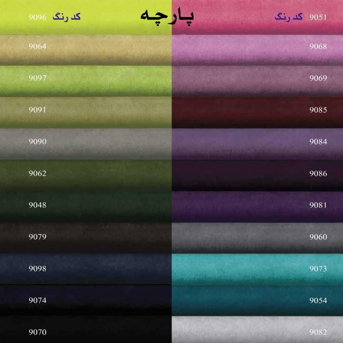رنگسرمه ای, طوسی, طلایی, نقره ای, رنگ بندی کامل, فیروزه ای, ذغالی, قرمز, کرم, یشمی, فیلی, قهوه ای, عسلی, ارغوانی, قرمز اخرایی, بژ, سفارشی, مسی, مشکی, سبز, نارنجی, خردلی, مشکی, آبی کمرنگ, کرم, سفید, صورتی, زرد, خاکی, سفید, نسکافه ای, آبی کربنی, آبی, گردویی, بنفش, آبی کاربنی, زرشکی, قهوه ای تیره, زیتونی