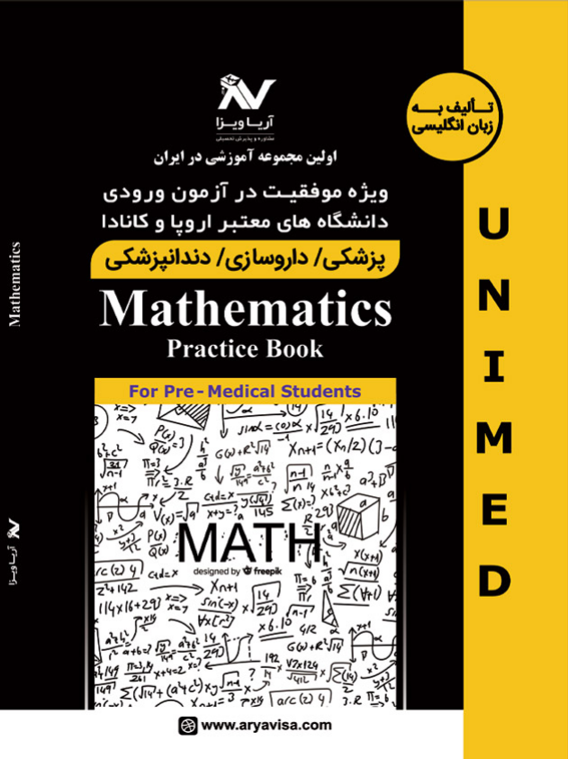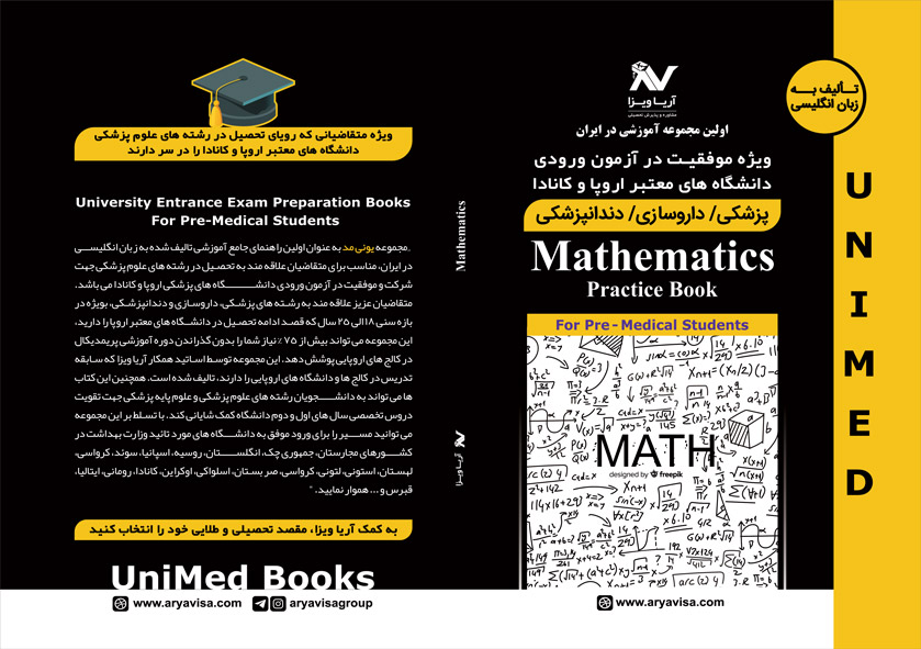 متقاضیان علاقه مند به رشته های علوم پزشکی از جمله پزشکی، داروسازی و دندانپزشکی، با توجه به آزمون محور بودن پذیرش دانشگاه های اروپا و کانادا و گذراندن دوره پری مدیکال در کالج های دانشگاهی، داشتن دانش کافی در زمینه علوم پزشکی ضروری است. درس ریاضی، از جمله دروس مهم در آزمون ورودی دانشگاه های پزشکی معتبر کشورهای اروپایی از جمله کشور ایتالیا و برای آزمون IMAT ایتالیا است. علم ریاضیات به مباحث کمیت، جبر، هندسه و آنالیز می پردازد. کتاب تمرینات ریاضیات یا Mathematics Practice Book در 11 فصل و به زبان انگلیسی توسط گروه آریا ویزا به نام کتاب های یونی مد – UniMed تالیف شده است. در این کتاب 2۰۰ تست و نمونه سوال ریاضی بدون پاسخ وجود دارد تا متقاضیان در منزل و یا در کلاس درس دوره آمادگی آزمون IMAT و یا کلاس دوره پری مدیکال یا فاندیشن توسط استاد به حل آن ها بپردازند. کتاب ها و پکیج های یونی مد – UniMed با استانداردهای آزمون های ورودی دانشگاه های پزشکی اروپا و کانادا و توسط اساتید بین المللی و با تجربه تالیف و گردآوری شده است و پاسخگوی بخش اعظم نیازهای مخاطبان ایرانی است.