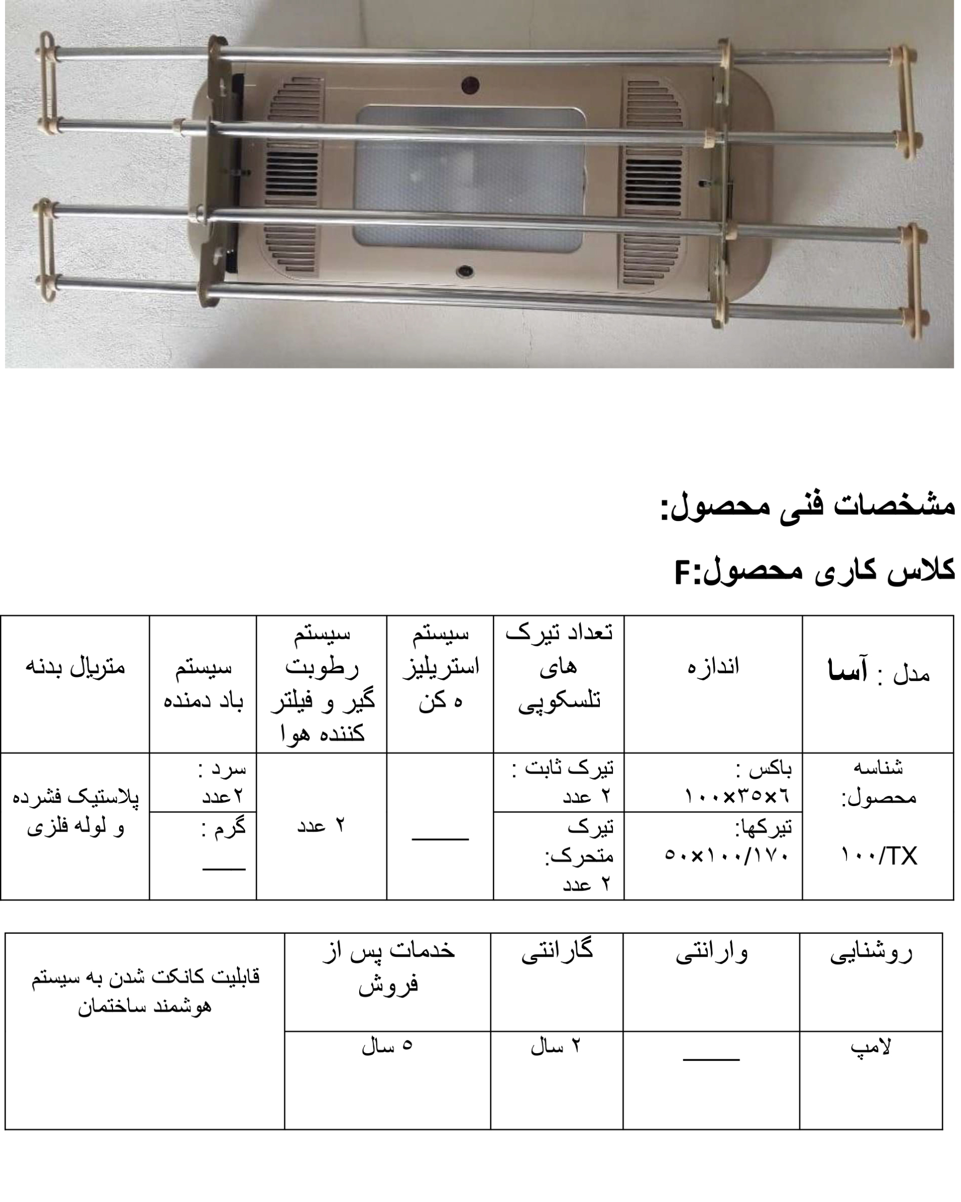 3- دارای 2 تیرک ثابت تلسکوپی وبهرهور بودن جهت آویز 8۰ الی 1۰۰ تکه لباس درمساحت کمتر از 2 مترمربع