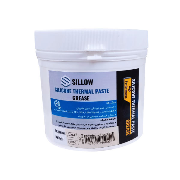 از خمیر سیلیکون برای هواگیری میان هیتسینک و آی سی یا … و همچنین اتصال بهتر بین هیت سینک و آی سی استفاده می شود تا به این وسیله عمل انتقال حرارت از آی سی به هیت سینک بهتر انجام شود . استفاده از خمیر سیلیکون با کیفیت می تواند عمر مفید تجهیزات الکترونیکی بالا ببرد. خمیر سیلیکون sillow مدل Sill-carbon دارای ضریب انتقال حرارت 1.761 وات بر متر کلوین بوده و رنگ آن طوسی می باشد.