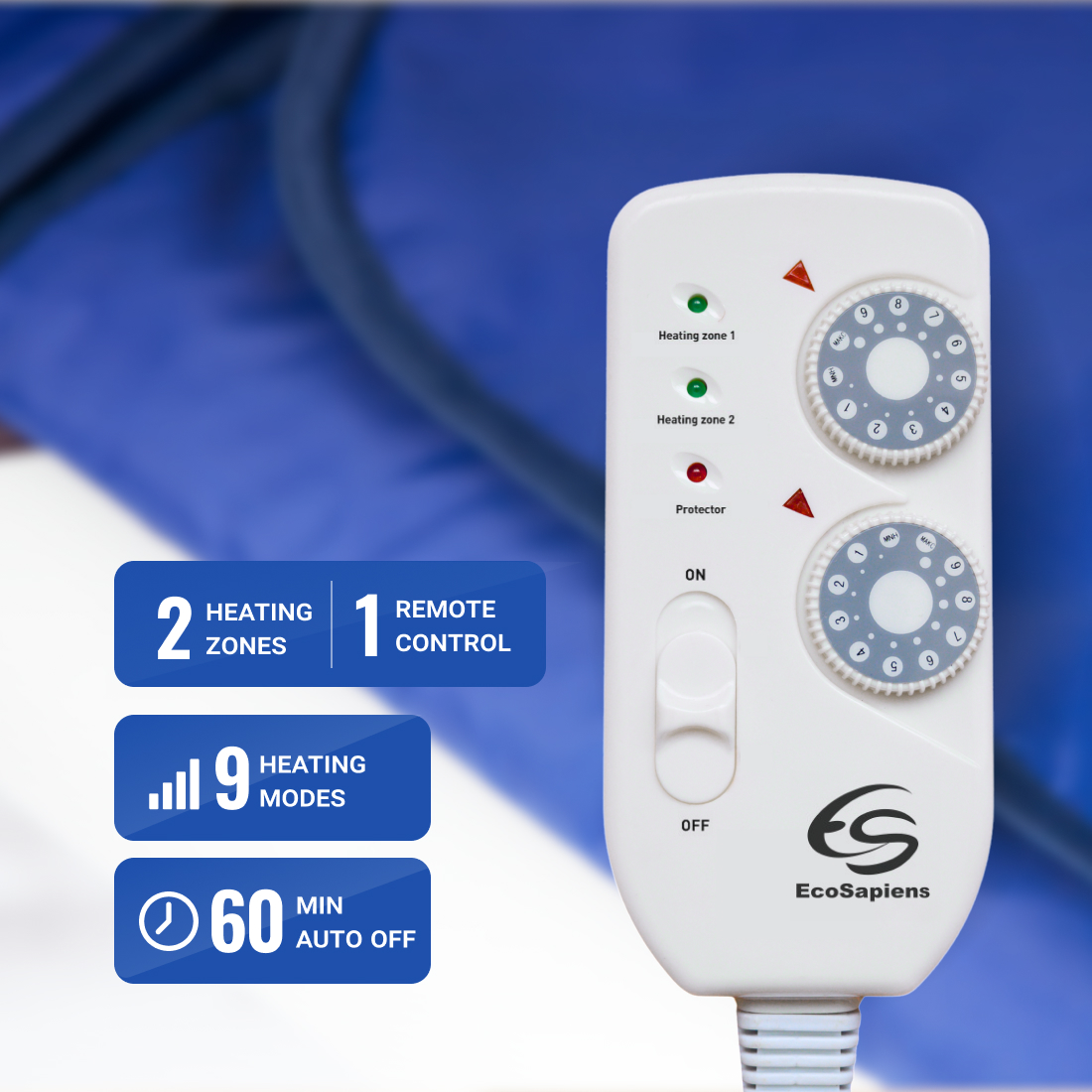 عمل کنند. می توانید ناحیه را از شانه ها تا پایین شکم یا باسن، باسن و پاها گرم کنید. طراحی پتو به شما این امکان را می دهد که بازوها را جداگانه بپیچید و پشت را کمی گرم کنید بدون اینکه سینه بیش از حد گرم شود. کیسه سونا مجهز به یک کنترل از راه دور برای استفاده راحت است. 9 حالت دما وجود دارد. بسته به نوع روش و درمان سم زدایی می توانید سطح دما (از 35 تا 55 درجه) را انتخاب کنید. عملکرد خاموش شدن خودکار برای ایمنی شما، پتوی برقی را پس از 60 دقیقه خاموش می کند. پتو گرمایش مادون قرمز از مواد آکسفورد با کیفیت بالا ساخته شده است که ضد آب است و به راحتی تمیز می شود.