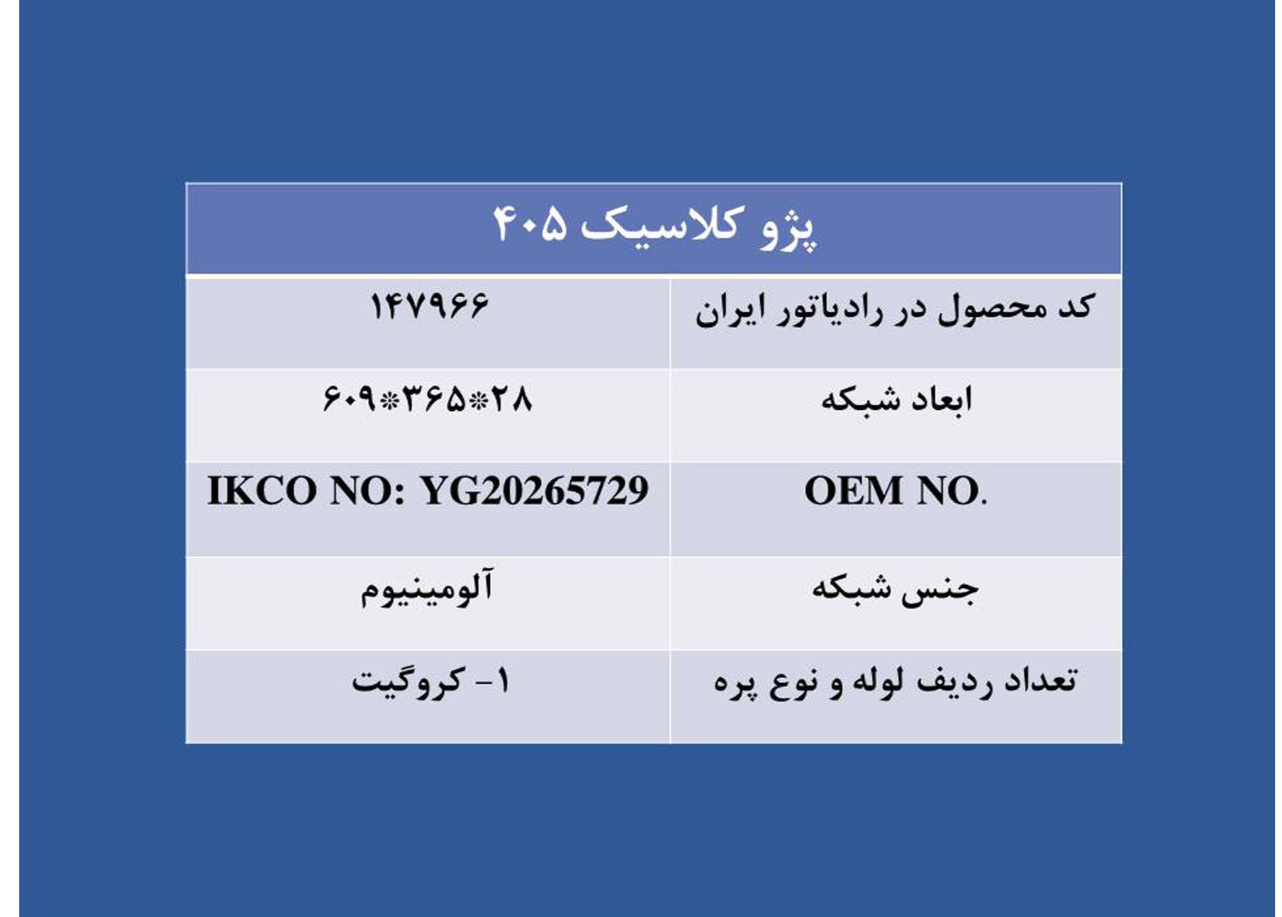 کد محصول در رادیاتور ایران : 147966