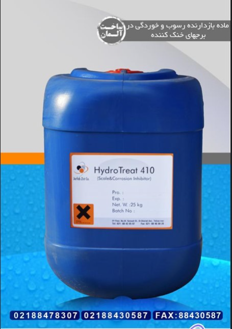 هیدروتریت410 ماده ای است بر پایه پلیمر و کوپلیمرهای بسیار موثر برای پیشگیری از تشکیل رسوب و خوردگی در مسیر آب برجهای خنک کننده.این ماده در مواردی که از آب با اسمز معکوس بعنوان آب تغذیه استفاده می شود و دارای خوردگی شدید است بسیار موثر است.این ماده با ایجاد